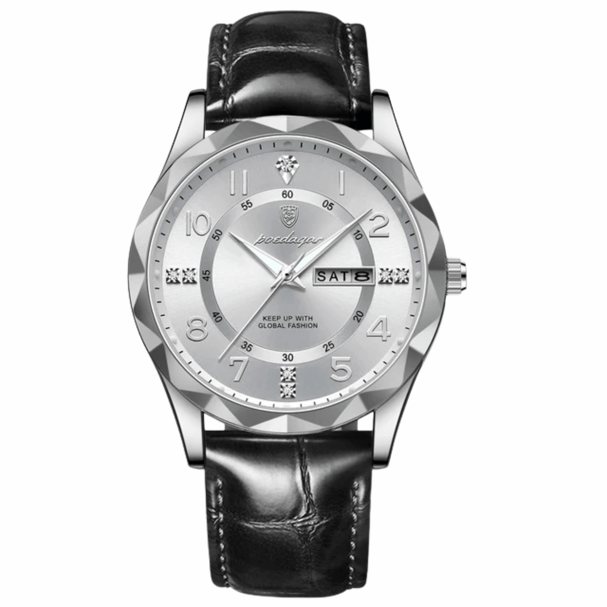 - Materiais Premium: Caixa em aço inoxidável e pulseira em couro legítimo ou aço inox.